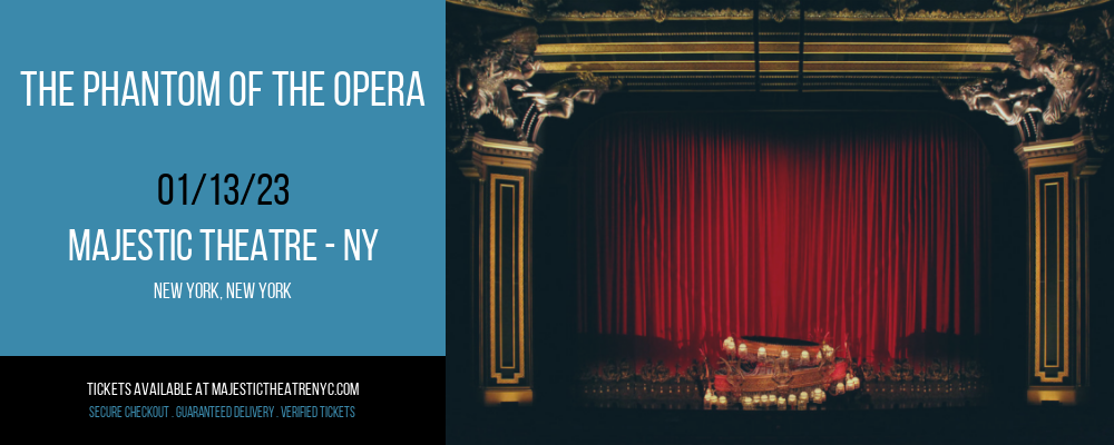 The Phantom of the Opera is a pretty big musical deal! You've seen it all over the internet, so nows your chance to get involved and see it for real in the winter of 2023! What a perfect night you'll have in January! Showing in the impressive Majestic Theatre, New York, New York, 'the finest venue in town' say many visitors, and they're right according to outstanding reviews! Friday 13th January 2023 needs to be in the diary because word has it you'll be at The Phantom of the Opera! To book your way into the musical, simply follow the booking link today! This will be the experience of a lifetime!